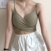 フロントクロスデザインのショート丈カップ付きブラキャミソール