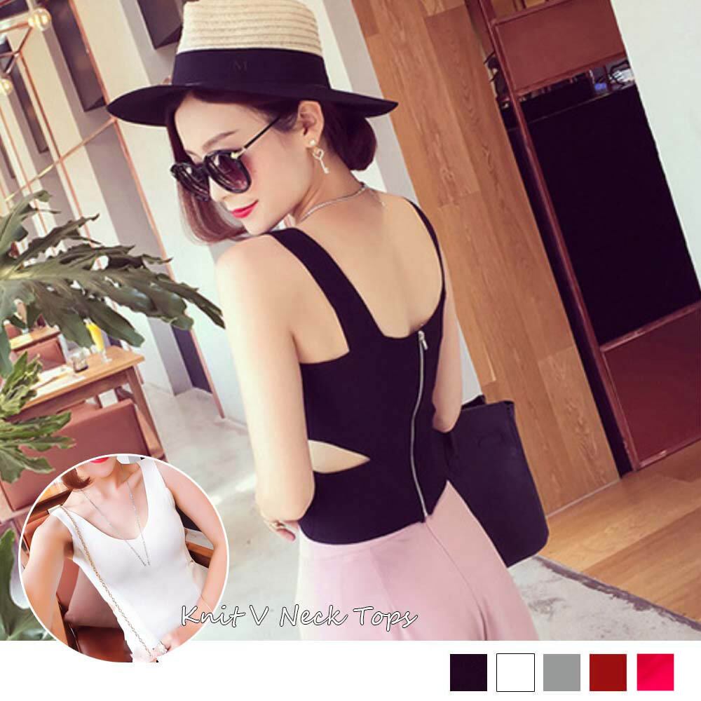 ノースリーブ ニットトップス Vネックレディース 無地 キャミソール 春夏