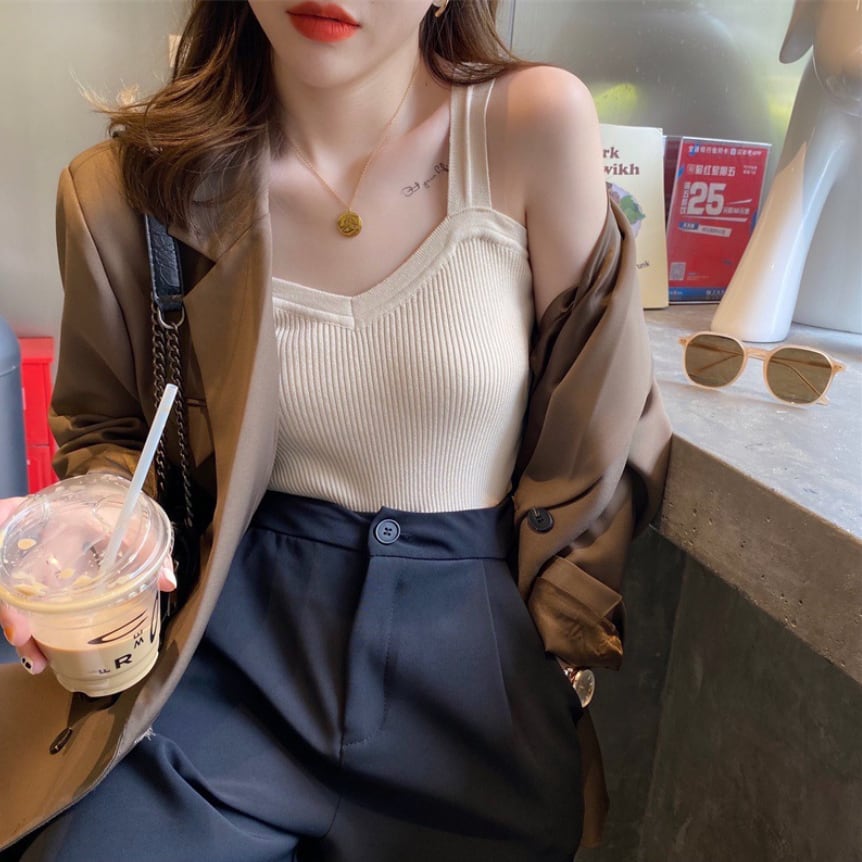 ベーシック キャミソール シンプル 無地 インナー トップス 伸縮性 ニットキャミ